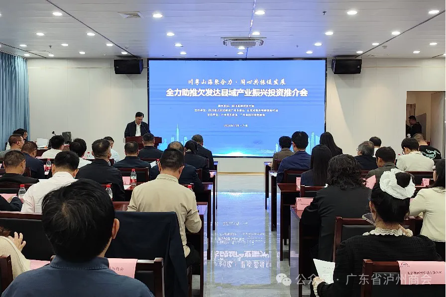 会议以“川粤山海聚合力·同心共振促发展”为主题,旨在深入贯彻中共四川省委十二届六次全会精神,全面落实中共四川省委、四川省人民政府推动欠发达县域加快追赶跨越发展部署要求,动员广大华南川商、优秀华南企业家等社会各界力量,全力支持欠发达县域产业精准帮扶工作。四川省经济合作局一级巡视员易旸,四川省人民政府驻广州办事处主任王德胜,副主任余斌、窦宇航、林鹏程,秘书处处长毛杰、劳务工作处处长任冬,综合信息处处长陈健、经济合作处负责人黄立斌,四川省甘孜州委常委、副州长程露,炉霍县副县长王应蓉、新龙县委常委、副县长陈宝堂,色达县副县长阿加布,稻城县副县长杨学武,得荣县县委常委、副县长泽郎初,苍溪县领导,粤港澳大湾区22家优秀企业领导,四川在华南地区60余家商(协)会和校友会代表共120余人出席推介会。广东省泸州商会监事长刘坤,常务副会长兼秘书长胡登举,商会党委副书记兼党委办公室主任高凭、副秘书长武华明等代表广东省泸州商会出席推介会。
