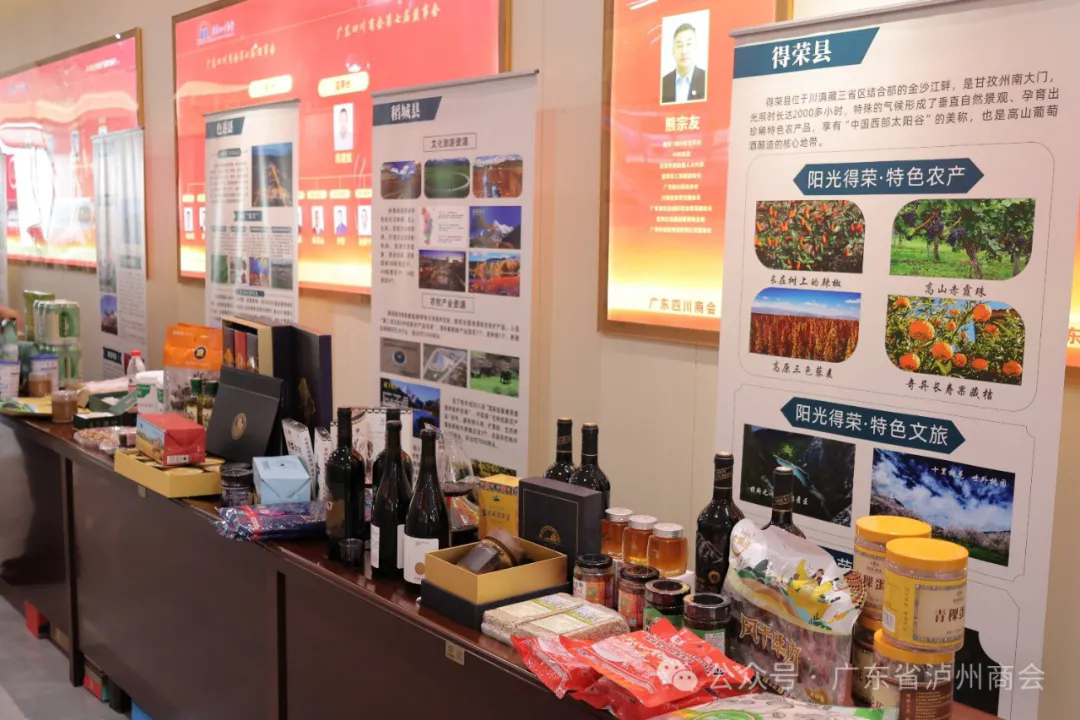 活动现场集中展示了甘孜州特色产品。会前,易旸对华南川商及欠发达县域进行业务指导培训。会后,四川省人民政府驻广州办事处组织了县域负责同志和企业家前往广东军威实业集团考察。