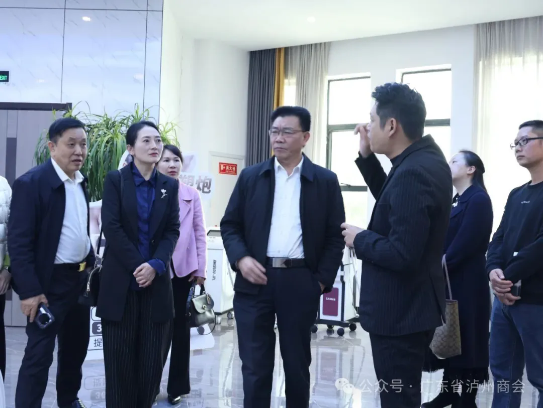 调研期间,谢先海书记一行先后走访参观了广州中科医疗美容仪器有限公司产品展示厅、泸商会馆泸州名优产品展销区、广州伟卓立电子科技有限公司及耀晖科技产业园,实地察看了商会办公场地、文化阵地、党建展区、荣誉室、党员活动中心、档案资料室、会所及“以商养会”项目,全面了解商会建设发展实况。