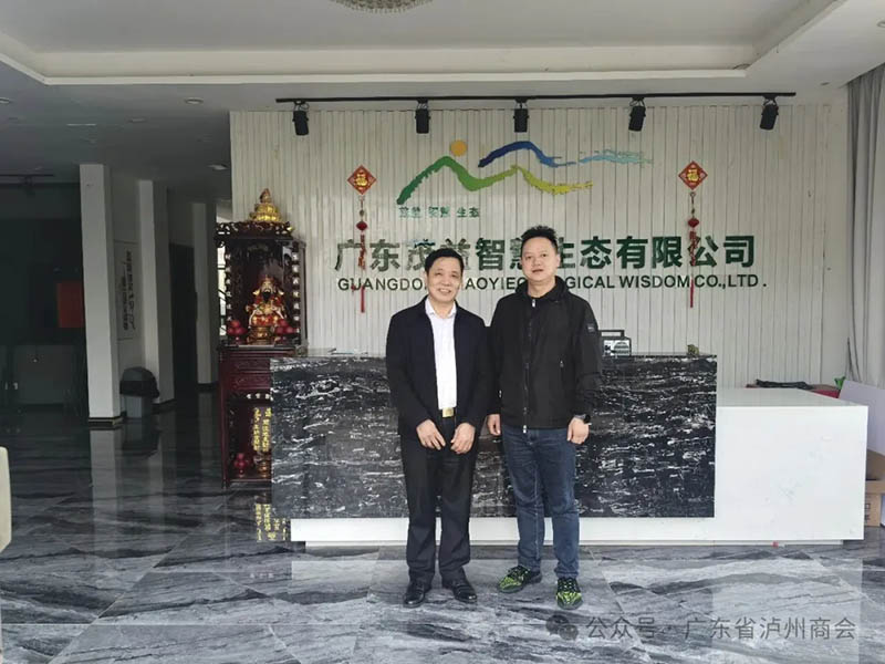 新元启幕,聚力同行。2026年1月1日,正值公历新年伊始,广东省泸州商会常务副会长兼秘书长胡登举一行专程赴中山市拜访泸州籍优秀企业家、广东茂益智慧生态有限公司董事长冯义龙先生,实地参观企业总部及产业布局,共叙桑梓情谊,共探智慧生态产业发展新机遇,为新一年粤川两地乡贤合作与产业协同拉开序幕。双方围绕科技创新、生态建设、家乡联动等议题展开深入对话,共同探索合作发展新路径。