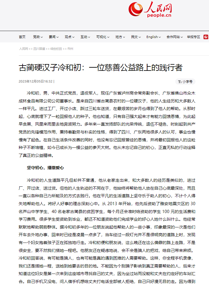 转载人民网-古蔺硬汉子冷和初:一位慈善公益路上的践行者